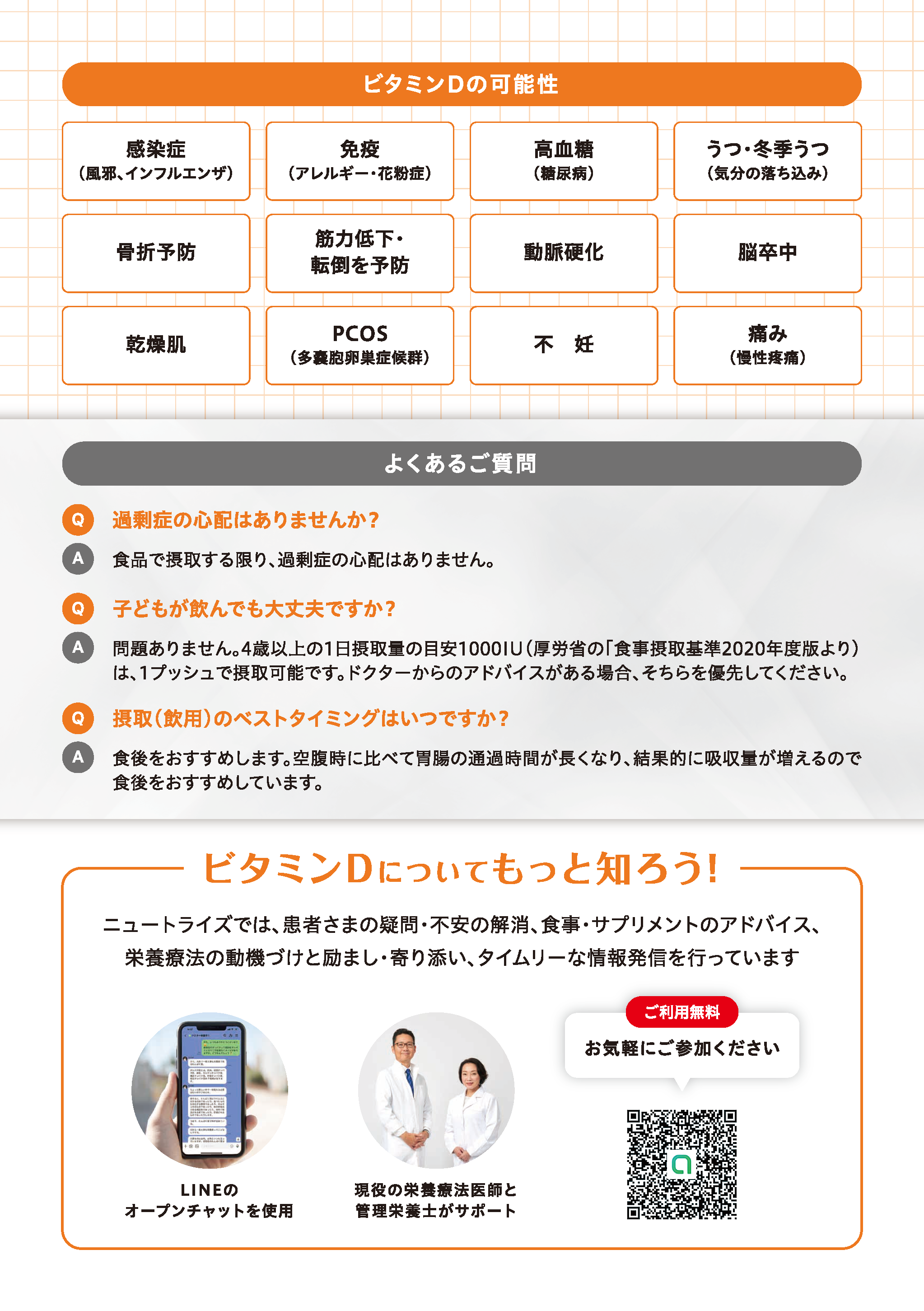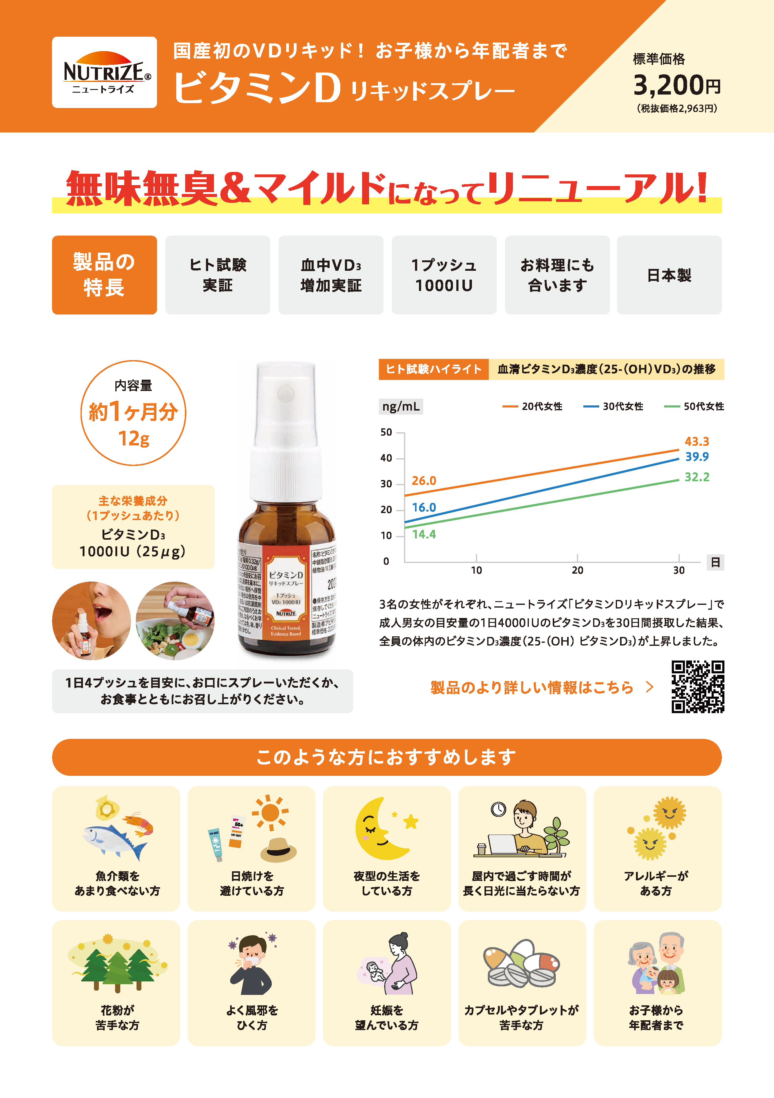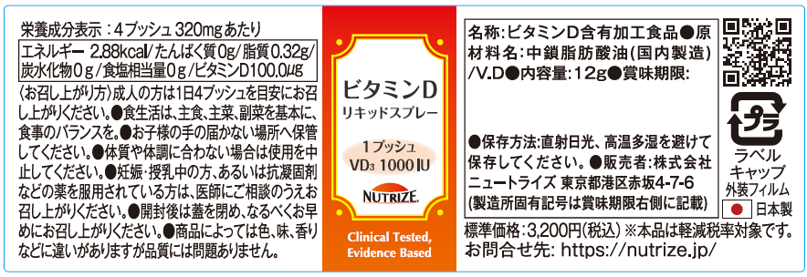 国産初のビタミンDリキッドタイプサプリメント「ビタミンDリキッドスプレー」に込めた想いをご理解していただくために、ニュートライズのコーポレートサイトにて「非常に低い日本人のビタミンDリキッド充足率」にまで立ち返り、ビタミンDをわかりやすくご説明しております。スペースの都合上、ここでは書ききれなかったことも、いっぱい書いています!ぜひ、ニュートライズのHPにもアクセスしてください。
