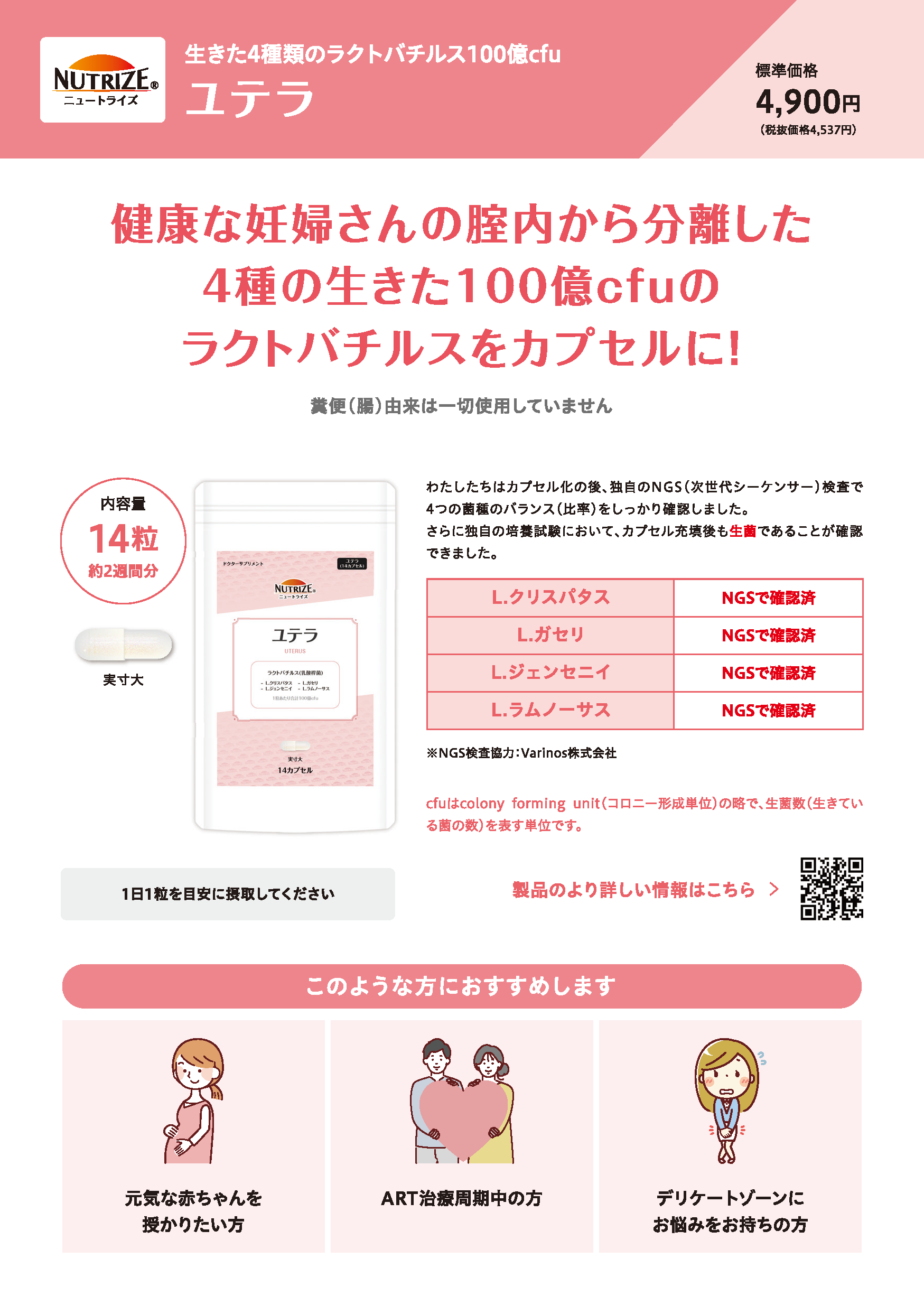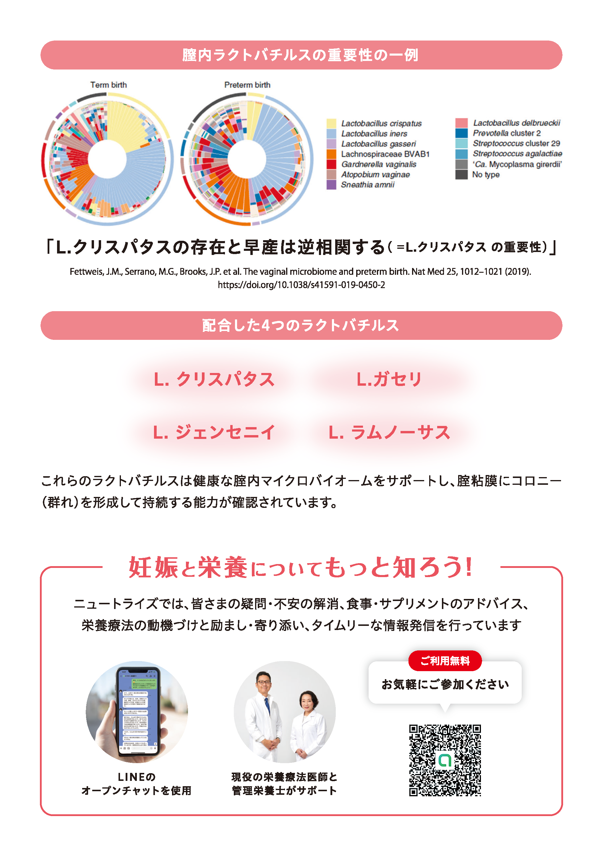 膣内フローラにおける乳酸菌バランスを考えた新しい製品となっております。